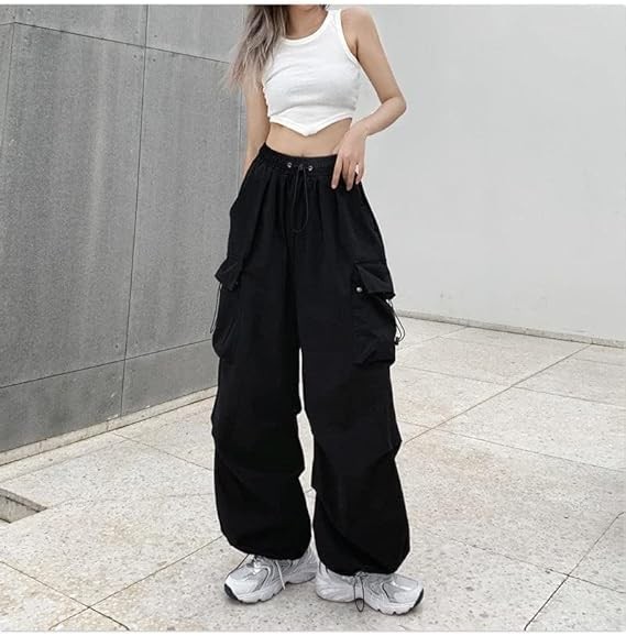 Material: Women baggy cargo pants were made of cotton blend, comfortable, breathable, lightweight, soft, comfy, durable. Design: Retro fairy grunge harajuku gothic pants for 90s egirls, vintage style tripp aesthetic, wide leg trousers, solid color long pants with pockets, low/mid waist for daily wear. Features: Wide leg, straight leg, low/mid waisted, solid color, cargo pants baggy, y2k pants, goth pants. Alt girl clothes, fairy grunge clothing, alt emo pants, techwear pants, 90s vintage pants for women, Japanese harajuku streetwear, punk pants.