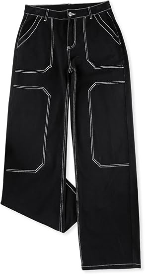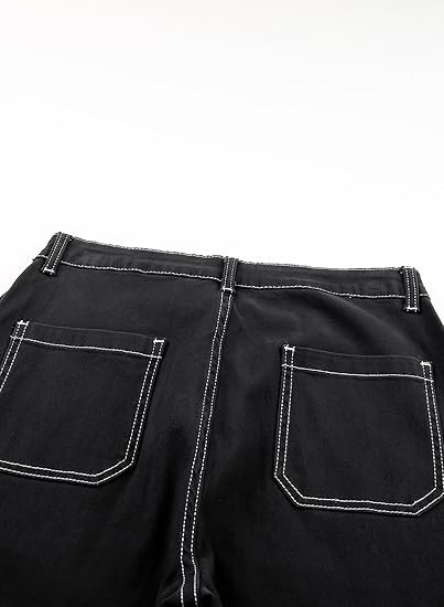 Features: Trendy cargo jean features wide leg, four pockets, contrast color stitches, mid rise, loose fit, button and zipper closure and full length. The unique visible seam line detail adds a touch of individuality and makes you stand out in a crowd Design: Wide leg jean could flatter a variety of leg types, providing ample room for movement and breathability. Cargo pants are versatile and practical addition to any wardrobe, making styling easier with their all-match cargo jeans style Style: Baggy jeans are the key to creating effortless style. Boyfriend jeans are both suitable for everyday wear and for dressing up, and can be easily paired with a tank top, T-shirt, camisole, blouse, sneakers, high heels, and more