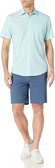 REGULAR FIT: Comfortable, easy fit through the shoulders, chest, and waist. WASHED POPLIN: Made from lightweight yet durable washed poplin, offering comfort and versatility for any season. EVERYDAY SHIRTING: With classic shirting details, the short sleeve poplin shirt is the perfect year-round wardrobe staple. Wear it tucked in for a polished look or untucked for casual sophistication. Pairs effortlessly with jeans, chinos, or shorts. DETAILS: Features a sturdy spread collar construction, a center front placket with secure button closure, and a classic shirt tail hem.