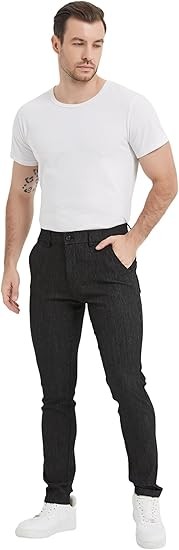 Keep it casual and stylish as you step out wearing the mens skinny pants, these men's skinny dress pants can keep you comfort all day. Whether you step into the office or step out on the weekend, our men's skinny chinos fit your needs perfectly.