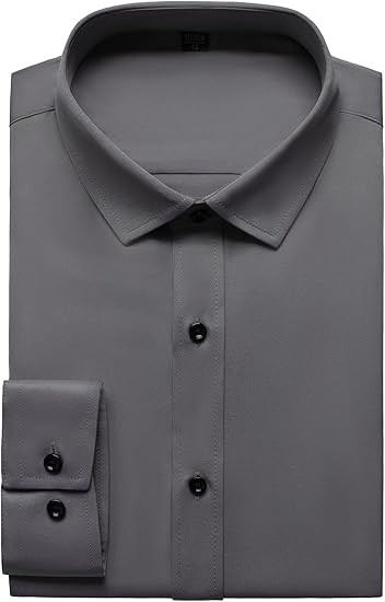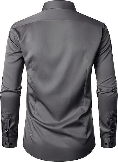 Men's Stretch Wrinkle Free Dress Shirts Formal Wedding Prom Long Sleeve Slim Fit Button Down Shirts