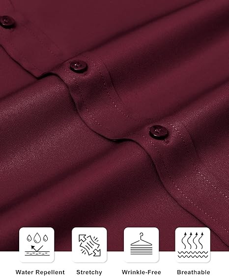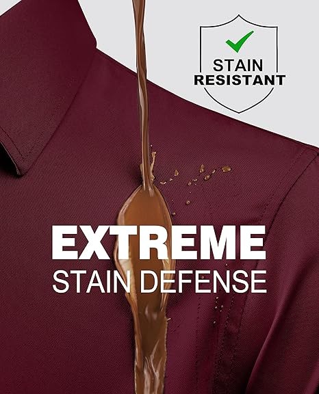 Stain Proof Mens Dress Shirts: Designed with Stain Shield technology material that blocks tough stains/most Oil-based spills before they start and makes to have stains literally roll off the dress shirts long sleeve, and keep clean and elegant all time Slim Fit Dress Shirts for Men: Modern fit with a tapered long sleeves, higher arm holes, and a slimmer cut at the chest and waist. This mens button down long sleeve dress shirts fit type is similar to fitted or classic fit Stretch Wrinkle Free Button Down Shirts: The mens long sleeve dress shirts made of stretch fabric, Fabric stretches and moves with you for extra comfort. airy and water proof, real wrinkle-free after iron and easy care, keep you looking crisp all day Button Down Shirt Men--The formal mens dress shirts button up with long sleeve, spread collar, button clousure, adjustable cuff, no pocket, streamlined design for developed stylish cleaner appearance Occasion: The dress shirt suitable for a variety of Formal/Casual/ Business/Wedding/Party/Club/Dating, the classic dress shirts for men is a perfect gift for family, lovers and friends, staff, Father Day ,Valentine's day, Christmas, New Year