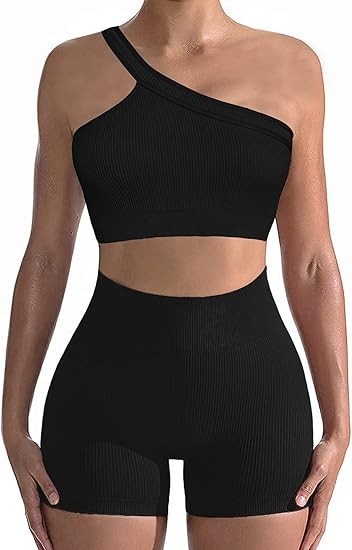 [Unique sports bra]: The removable chest pad gives you freedom of choice and convenience of washing. Wide one shoulder strap make you feel unfettered and doesn't slide down. Our ribbed workout sets for women, girls, athletes, exerciser is high impact and wear-resistant.
