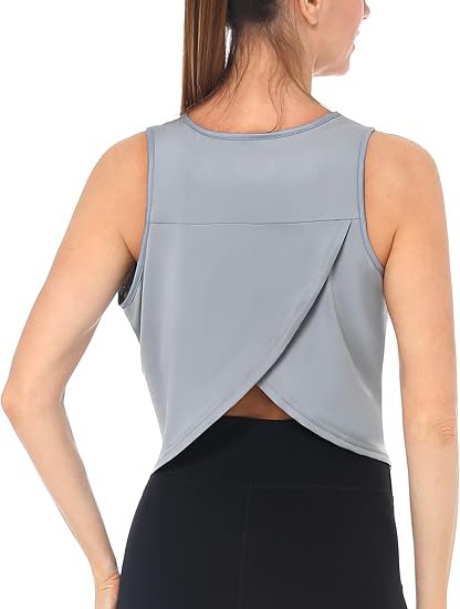 Women's Cropped Workout Tank Tops Open Back Sleeveless Sports Yoga Tops Active Shirts