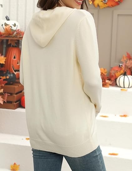 For an oversized look, choose your normal size; for a fitted look, choose one size smaller. Please consult the size chart before placing your order to ensure the best fit. Model is wearing size S and is 5'9'' tall, BWH: 33.8'', 24.8'', 36.2''. S=4-6, M=8-10, L=12-14, XL=16-18. Fall Oversized Hoodies: Wear this cozy trendy sweater hoodie with three buttons that you can open or close as needed. The cuffs and hem are designed with elastic ribbed patterns, adding a sense of fashion and fit. Knitted Long Sleeve Sweatshirts: Comfy drawstring hoodie with a kangaroo pocket is a classic design that gives you a casual style. It is also convenient to carry things like phone or keys and keep your hands warm.