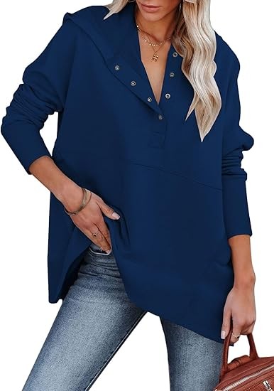 Features: This trendy hoodie sweatshirt for women features long sleeves, a button-down V-neck, a large kangaroo pocket, and an oversized design for a relaxed and baggy appearance. The cuffs, hem, and pocket edges are ribbed for ample elasticity, offering a superior wearing experience suitable for any body type. It's a great addition to your wardrobe.