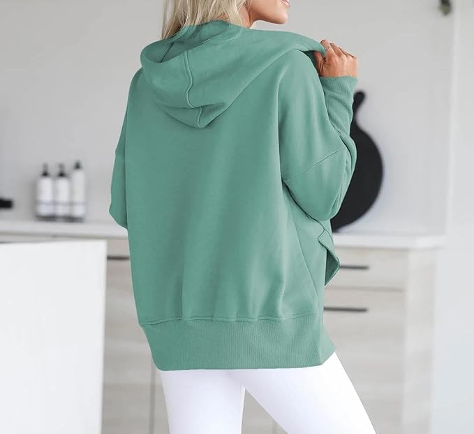 Material: 95% Polyester + 5% Elastane; This trendy cute hoodie top is made of soft and skin-friendly fabric, comfy and comfortable, providing you with a loose and cozy wearing experience. Features: This trendy hoodie sweatshirt for women features long sleeves, a button-down V-neck, a large kangaroo pocket, and an oversized design for a relaxed and baggy appearance. The cuffs, hem, and pocket edges are ribbed for ample elasticity, offering a superior wearing experience suitable for any body type. It's a great addition to your wardrobe. Match:Loose-fitting hoodie tops effortlessly complement various casual bottoms like leggings, pants, jeans, joggers, and shorts, when paired with sneakers or casual shoes, to achieve a stylish and chic appearance during the spring, fall, and winter seasons. Wearing it creates the most beautiful and stylish look. Occasion:This pullover sweatshirt is Perfect for daily, home, school, shopping, going out, club, night out, holiday, weekend, vacation, office, work, date, streetwear, etc.It's also a good gift to your friend or family in spring,fall and winter.