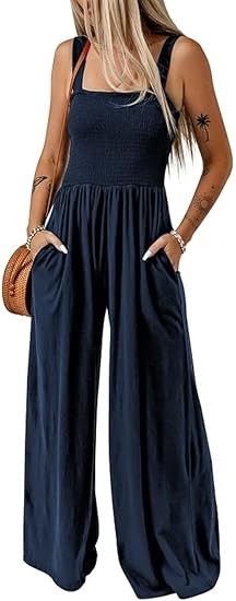 Women's Overalls is made with lightweight and soft material, which are smooth, elastic and stretchable, flexible and breathable, comfortable to wear. Not see through. Feature: One Piece Sleeveless Jumpsuits, Square Neck, Wide Leg Pants, Two Side Pockets, Solid Color, Stretchable Long Pants Jumpsuit, Loose Fit, Casual Style. Match: Great with jacket, sneakers, Sandals, Heels and Beach hat for outwear. A perfect jumpsuit for your summer. Wear a cardigan over wide leg jumpsuit /dress on cool weather. Ocassion: One Piece Fashion Long Jumpsuit Overalls Suitable for Beach, Travel, Vacation, Office, Streetwear, Cocktail, Daily Life. Perfect Match with T-Shirts, Tops, Blouse and Sneakers.