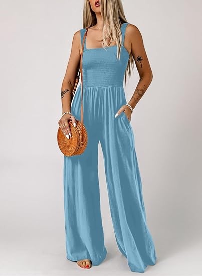 Women's Overalls is made with lightweight and soft material, which are smooth, elastic and stretchable, flexible and breathable, comfortable to wear. Not see through. Feature: One Piece Sleeveless Jumpsuits, Square Neck, Wide Leg Pants, Two Side Pockets, Solid Color, Stretchable Long Pants Jumpsuit, Loose Fit, Casual Style. Match: Great with jacket, sneakers, Sandals, Heels and Beach hat for outwear. A perfect jumpsuit for your summer. Wear a cardigan over wide leg jumpsuit /dress on cool weather. Ocassion: One Piece Fashion Long Jumpsuit Overalls Suitable for Beach, Travel, Vacation, Office, Streetwear, Cocktail, Daily Life. Perfect Match with T-Shirts, Tops, Blouse and Sneakers.