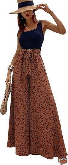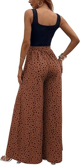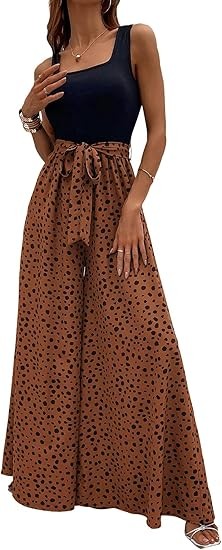 Material:Polyester and spandex.Well made,comfortable fabric.Casual comfy as pajama pants,lightweight and breathable. Design:Dalmatian print,colorblock,sleeveless,square neck,wide leg,empire waist,tank top jumpsuit,with belt,loose and casual style will be your best choice in summer! Occasion:The tank top jumpsuits for women are perfect for spring,summer,fall,going out,beach,vacation,shopping,homeware,date,yoga,party,club,garden party,wedding,cocktail,honeymoon,work,any outdoor or indoor activities. Match:You can pair this color block wide leg pants with variety of shirts,blouses,tunics,sandals,sneakers or heels to complete casual look that's easy to love all season long to show your curves and flatter your body.