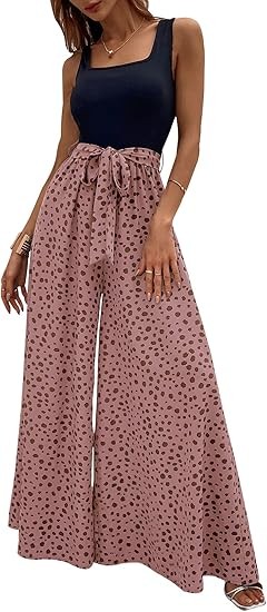 Material:Polyester and spandex.Well made,comfortable fabric.Casual comfy as pajama pants,lightweight and breathable. Design:Dalmatian print,colorblock,sleeveless,square neck,wide leg,empire waist,tank top jumpsuit,with belt,loose and casual style will be your best choice in summer! Occasion:The tank top jumpsuits for women are perfect for spring,summer,fall,going out,beach,vacation,shopping,homeware,date,yoga,party,club,garden party,wedding,cocktail,honeymoon,work,any outdoor or indoor activities. Match:You can pair this color block wide leg pants with variety of shirts,blouses,tunics,sandals,sneakers or heels to complete casual look that's easy to love all season long to show your curves and flatter your body.