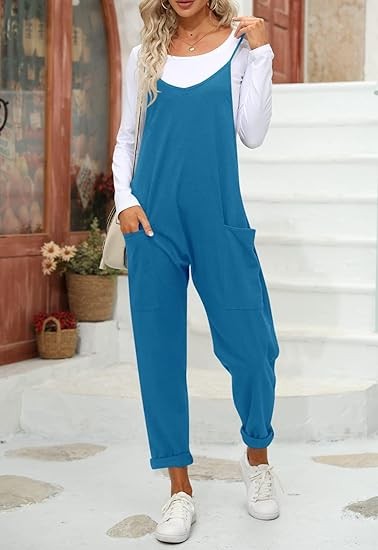 Material: This jumpsuit for women is made of cotton and polyester fabric, lightweight, stretchy, soft and comfortable to wear. The "White" romper is a little see through, suggest wear a nude or light color underwear Features: Women sleeveless rompers, with relaxed fit design, solid color, two big side pockets, low crotch, back pocket decoration, long pants jumpsuits, cute and stylish outfits for women Match: Womens One Piece Jumpsuit is nice to pair with t-shirts, tank top, crop top, blouse, sneakers and heels, etc. Wear a cardigan or jacket outside the jumpsuit on cool weather Occasion: Fashion overalls is suitable for daily wear, home wear, beach, dating, travel, vacation, party, office, cocktail and more Garment Care: Hand wash cold, soft machine washable. Do not bleach, hang dry