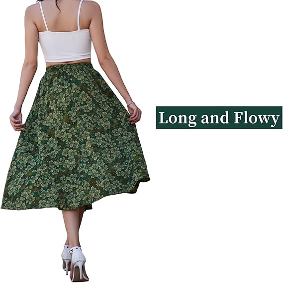? 【Hidden Pocket】: These long skirts for women have two large pockets, which can store mobile phones, keys, and other items, freeing your hands. ? 【Elastic Waistband Design】: The elastic waistband of this long skirt has strong elasticity. suitable for most body types, and is super comfortable to wear in spring and summer. ? 【High-Quality Fabric】: These women's skirts are made of high-quality fabric, which is light, soft, breathable, comfortable, and full of texture. Wearing this maxi skirt in summer will make you very comfortable. ? 【Applicable Occasions】:This long maxi skirt can be paired with shirts, high heels, or flat shoes, making you elegant and feminine. It also suits various occasions, such as dating, parties, beaches, holidays, weddings, cocktail parties, and daily leisure.