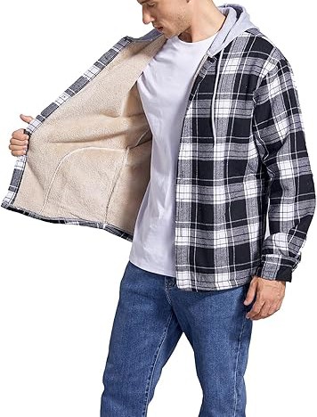 Comfortable Fit: This long sleeve flannel shirt crafted with a 100% Cotton flannel shell and soft beige sherpa lining will keep you warm all season long. Your new wardrobe favorite. Features: Button, long sleeves(The sleeves lined), 2 side pockets, drawstring hood, plaid element outer and fuzzy fleece inside, to provide extra warmth and comfort. Size: Our flannel shirts are regular fit style, a variety of sizes and colors for you to choose, please refer to the size chart to choose the size that suits you. Occasion: This is a versatile hooded jacket that will look stylish with your Tshirt and jeans. Perfect For Daily Wear, such as hiking, trekking, camping, hunting, biking and other outdoor activities. Any occasion is perfect in Spring, Fall and Winter.