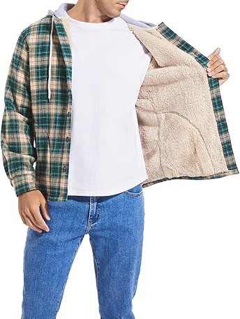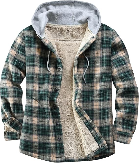 Comfortable Fit: This long sleeve flannel shirt crafted with a 100% Cotton flannel shell and soft beige sherpa lining will keep you warm all season long. Your new wardrobe favorite. Features: Button, long sleeves(The sleeves lined), 2 side pockets, drawstring hood, plaid element outer and fuzzy fleece inside, to provide extra warmth and comfort. Size: Our flannel shirts are regular fit style, a variety of sizes and colors for you to choose, please refer to the size chart to choose the size that suits you. Occasion: This is a versatile hooded jacket that will look stylish with your Tshirt and jeans. Perfect For Daily Wear, such as hiking, trekking, camping, hunting, biking and other outdoor activities. Any occasion is perfect in Spring, Fall and Winter.