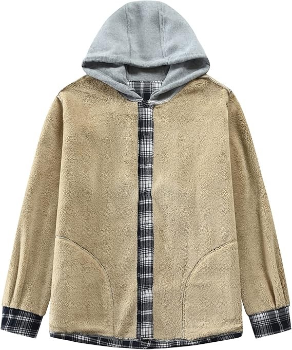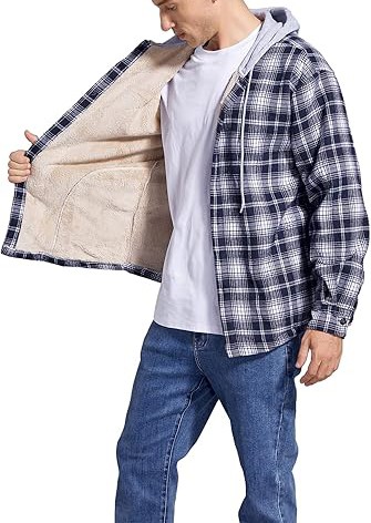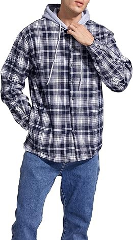 Comfortable Fit: This long sleeve flannel shirt crafted with a 100% Cotton flannel shell and soft beige sherpa lining will keep you warm all season long. Your new wardrobe favorite. Features: Button, long sleeves(The sleeves lined), 2 side pockets, drawstring hood, plaid element outer and fuzzy fleece inside, to provide extra warmth and comfort. Size: Our flannel shirts are regular fit style, a variety of sizes and colors for you to choose, please refer to the size chart to choose the size that suits you. Occasion: This is a versatile hooded jacket that will look stylish with your Tshirt and jeans. Perfect For Daily Wear, such as hiking, trekking, camping, hunting, biking and other outdoor activities. Any occasion is perfect in Spring, Fall and Winter.