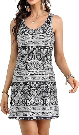 Material: Summer Dresses for women Crafted from 95% polyester and 5% elastane, womens summer dresses offers a soft, stretchy fit that resists shrinking, providing lasting comfort throughout the day. Features:Sleeveless dress for women features a vibrant print with a relaxed round neckline and flattering A-line silhouette, giving off a chic Boho dresses. Beach dress sleeveless design makes it perfect for summer. Occasion:Summer dresses perfect for casual outings, daily wear, family events, the beach, work, party,club,church,holiday,outgoing vacations, dates, shopping, and school. women's casual dresses easily transitions from casual to stylish, making it ideal for spring, summer, and fall.