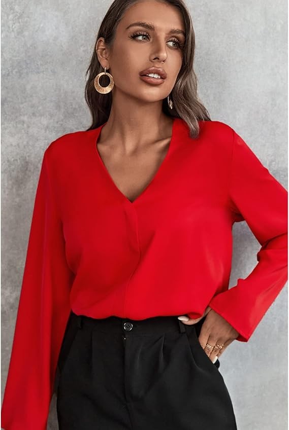 Women's Long Sleeve Shirts V Neck Business Casual Plain Work Blouses Tops