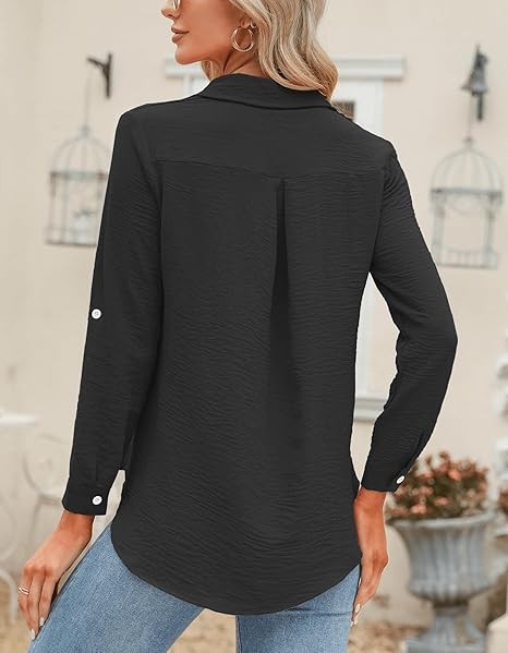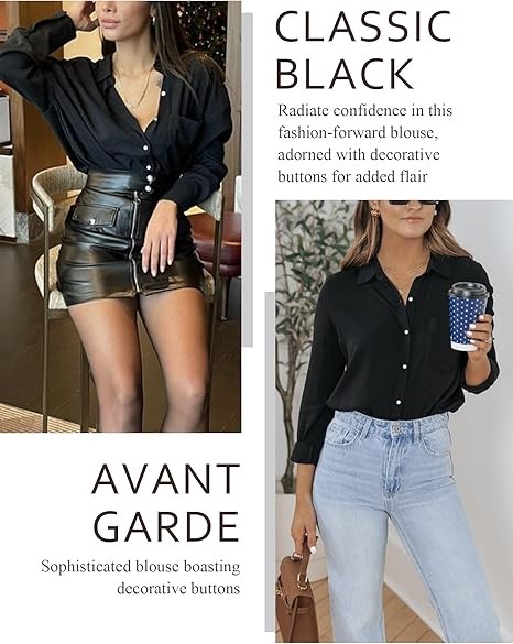 Effortless Style, Multiple Options: Elevate your look with our black button up shirt women. These business casual outfits for women seamlessly blend comfort with chic style. The 3/4 sleeves offer versatility—wear them as is, roll them up, or opt for a classic long sleeve look. Perfect for various weather, occasions, and outfit needs, this shirt provides a simple yet stylish solution for your wardrobe. Ultimate Comfort, Latest Style: Stand out in our 3/4 length sleeve womens tops. Crafted from a cozy blend of 95% Rayon and 5% Spandex, these shirts offer unbeatable comfort. With a relaxed fit and lightweight feel, these business casual tops for women are effortlessly stylish. A must-have for your wardrobe, they strike the perfect balance between comfort and trendy fashion. Effortless Elegance: Introducing a must-have for your closet—the women's clothing! Slip into the carefree energy of our blouses & button-down shirts and share your style masterpieces with us. Perfect for every occasion, these work shirts for women seamlessly elevate your look, be it for casual days, work, travel, or a night out. Daily Chic: Elevate your style with this womens spring fashion 2025, a daily essential. Pair it effortlessly with jeans, leggings, pants, or shorts for a chic look suitable for various occasions—parties, club nights, dinners, dates, weddings, and vacations. Transition seamlessly into professional settings by incorporating it into your work or business attire, ideal for school, office, interviews, and formal occasions.