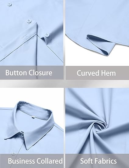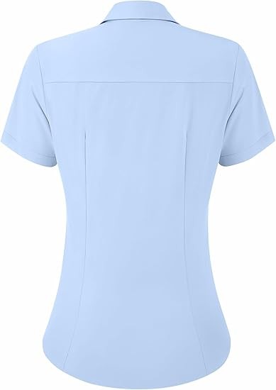 Easy to Create an Elegant Look: Women's button down shirts are made from 100% polyester fiber, comfortable to wear Features Designs: Women's oxford shirt with a spread collar, solid color, and a button-down closure feature a unique cut at the waist that flatters the figure Easy to Partner:Our women's short sleeve button up shirts are perfect for both professional and casual use. This chic women's blouse can be paired with suit pants/leggings for an easy professional/casual look