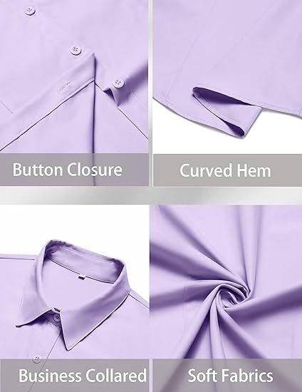 Easy to Create an Elegant Look: Women's button down shirts are made from 100% polyester fiber, comfortable to wear Features Designs: Women's oxford shirt with a spread collar, solid color, and a button-down closure feature a unique cut at the waist that flatters the figure Easy to Partner:Our women's short sleeve button up shirts are perfect for both professional and casual use. This chic women's blouse can be paired with suit pants/leggings for an easy professional/casual look