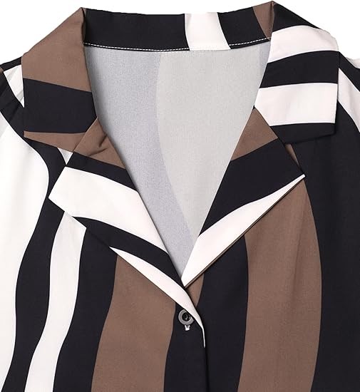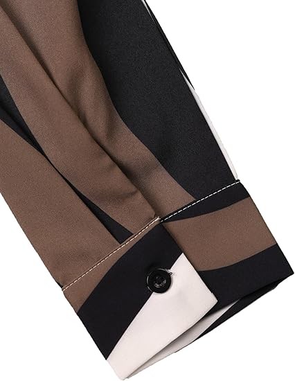 Women Pattern Print Button Down Blouse Top Long Sleeve Work Business Shirt