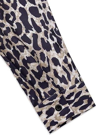 [Material]: The business casual blouse made of Polyester, chiffon feeling fabric and no stretch; very soft and comfy, close to skin [Features]: Dalmation print shirt for women, casual v neck, long sleeve, button down, lapel collar, trendy leopard print / polka dot print / solid color, relaxed fit [Occasion]: Elegant work blouse, with stylish printed pattern, perfect for work, business, office, date, cocktail, club, wedding, holiday, shopping or daily casual wear [Style]: Casual, elegant and cute style, this fashion leopard print top can be worn with denim jeans, skinny pants, shorts, boots and heels in Summer/ Fall/ Winter/ Spring
