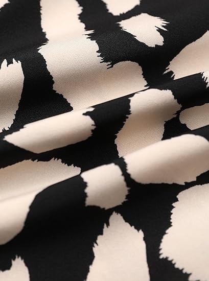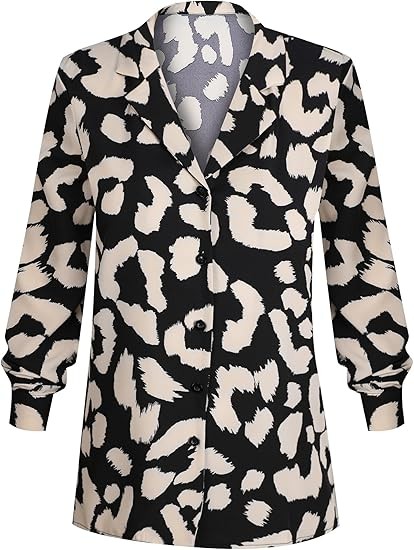 [Material]: The business casual blouse made of Polyester, chiffon feeling fabric and no stretch; very soft and comfy, close to skin [Features]: Dalmation print shirt for women, casual v neck, long sleeve, button down, lapel collar, trendy leopard print / polka dot print / solid color, relaxed fit [Occasion]: Elegant work blouse, with stylish printed pattern, perfect for work, business, office, date, cocktail, club, wedding, holiday, shopping or daily casual wear [Style]: Casual, elegant and cute style, this fashion leopard print top can be worn with denim jeans, skinny pants, shorts, boots and heels in Summer/ Fall/ Winter/ Spring
