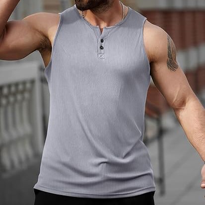 Mens Workout Tank Tops Summer Gym Muscle Ribbed Sleeveless Henley Shirt Casual Knitted Slim Fit Beach