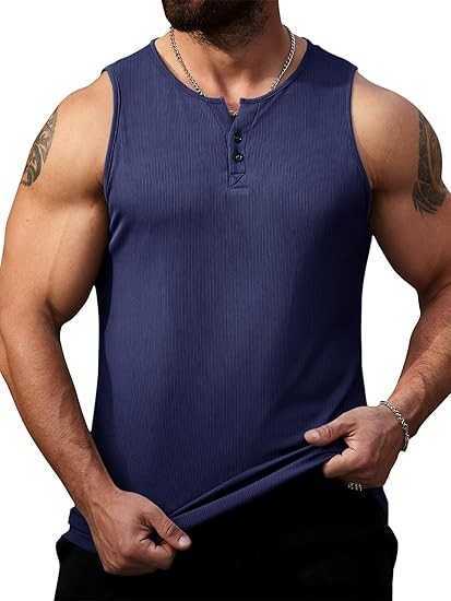 Henley and Sleeveless Design: Summer gym muscle t-shirt features a henley design and slight ribbed design, v neck, sleeveless, ribbed hem, 2-button closure and solid color, adding a touch of vintage charm to your wardrobe and keeping you cool in summer