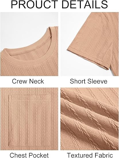 Mens Short Sleeve T-Shirts Casual Knit Texture Crewneck Pocket Tee Tops Loose Fit Summer Shirt
