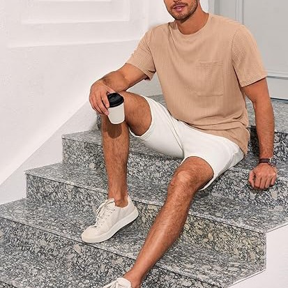 Features: Lightweight pocket tees for men, jacquard textured pattern, crew neck, ribbed neckline, short sleeve, single pocket at chest, loose fit, fashionable oversized men's t-shirt Good Quality: This crewneck t-shirt is made of premium material, jacquard knitted fabric, it is good stretchable, breathable, comfortable, soft and skin-friendly