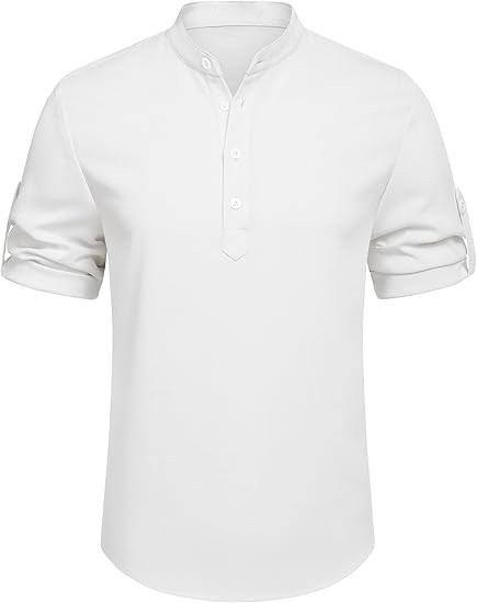 【CASUAL & FASHION】: Mens casual chambray shirt comes with band collar, button-down closure, rounded hem. The henley shirt can be worn with the sleeves rolled up or down, keep you cool and relaxed all the time especially in hot summer.