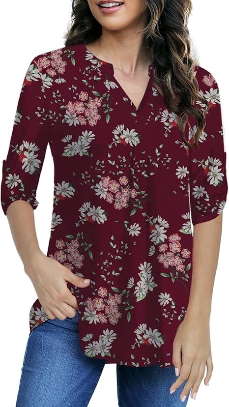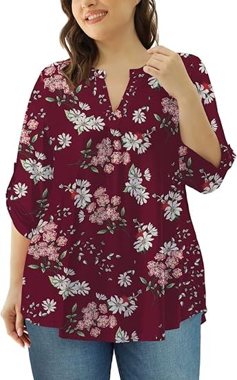 【SIZE】Womens plus size tops, plus size blouses for women, 6 US sizes(M,L,1X,2X,3X,4X) 【FEATURES】Floral Print, 3/4 sleeve, fashion V neck design,plus size tops for women, swing hem drapes nicely and hides your belly & hips well, adds femininity 【PAIRS WITH】Plus size 3/4 sleeve tops for women, plus size blouse, match this plus tunics with jeans, leggings in Spring, Summer and Fall 【OCCASIONS】 Dressy casual business fashion comfy loose fitting womens plus size blouses, Suitable for Office/ Dating/ Formal Occasions/ Daily Casual Wear/ Workwear, etc