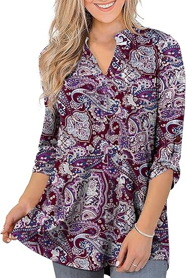【SIZE】Womens plus size tops, plus size blouses for women, 6 US sizes(M,L,1X,2X,3X,4X) 【FEATURES】Floral Print, 3/4 sleeve, fashion V neck design,plus size tops for women, swing hem drapes nicely and hides your belly & hips well, adds femininity 【PAIRS WITH】Plus size 3/4 sleeve tops for women, plus size blouse, match this plus tunics with jeans, leggings in Spring, Summer and Fall 【OCCASIONS】 Dressy casual business fashion comfy loose fitting womens plus size blouses, Suitable for Office/ Dating/ Formal Occasions/ Daily Casual Wear/ Workwear, etc