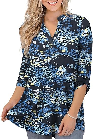 Womens Tops Dressy Casual 3/4 Sleeve Shirts Tunic Blouses Plus Size Tops for Women