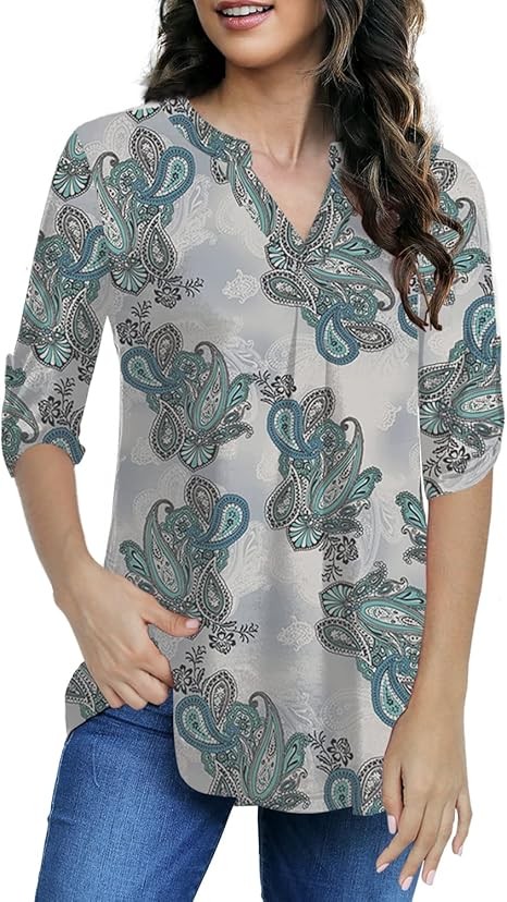 Womens Tops Dressy Casual 3/4 Sleeve Shirts Tunic Blouses Plus Size Tops for Women