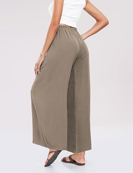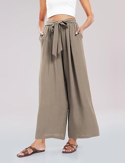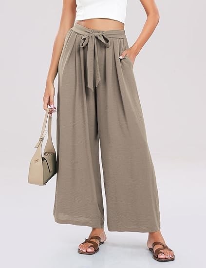 Classic &Comfort】Wide leg high waisted pants for women are made of high quality linen & cotton blend fabric, flowy beach pants lightweight and soft, skin-friend. 【Note Size】Loose dress pants for women for S- XXL, please refer to the picture on detail page ,loose pants for women high waist,wide leg beach pants for women,high waisted boho pants, flowy pants for women,high wasted pants,tie front flowy wide leg pants. 【More unique design】Womens high waisted wide leg pants are designed with solid color. loose fit palazzo pants for women with two pocket,wide leg pants, flowy summer pants,beach cover up pants,elastic waist, bow tie,suitable for all shapes and sizes 【Perfect for More Occasions】Summer dress pants for women who go from the office to casual life with the whole process, yoga, jogging, hiking, outdoor activities, casual wear, home wear, streetweat, going out, vacation or beach wear. summer wide leg pants for women 2024 suit all occasion.