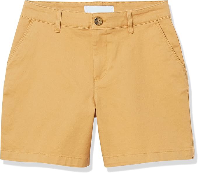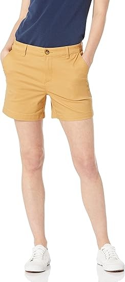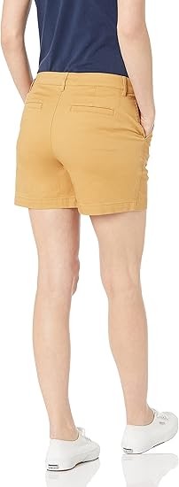STRAIGHT FIT: Slim fit through the hip and thigh, straight through the thigh and leg opening. Also offered in Curvy sizes for a curvier fit through the hip and a narrower waist. STRETCH COTTON TWILL: Washed for softness, this cotton twill is naturally breathable and has a bit of stretch for comfort and flexibility. CLASSIC KHAKI SHORT: These classic Khaki shorts are the ultimate summer style. Offering a clean, gently structured silhouette, these shorts also fit with comfort and ease for at work, weekend exploring, or running errands. Complete your look with Essentials Women's Sneakers or Sandals.